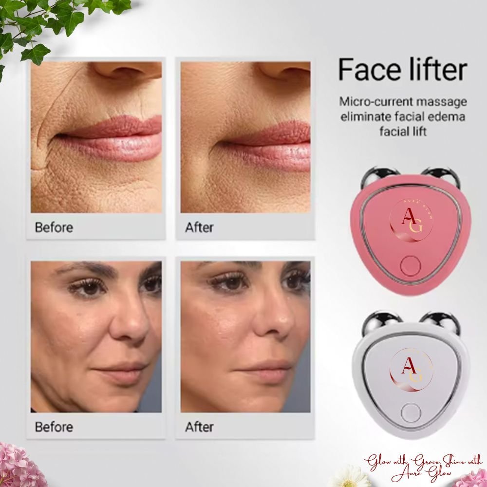 AuraGlow’s V-Face device harnesses the power of gentle microcurrent technology to stimulate the deeper layers of your skin, promoting increased collagen production and enhancing blood circulation. This targeted approach helps in tightening sagging skin, reducing the appearance of fine lines and wrinkles, and improving overall skin tone and texture.